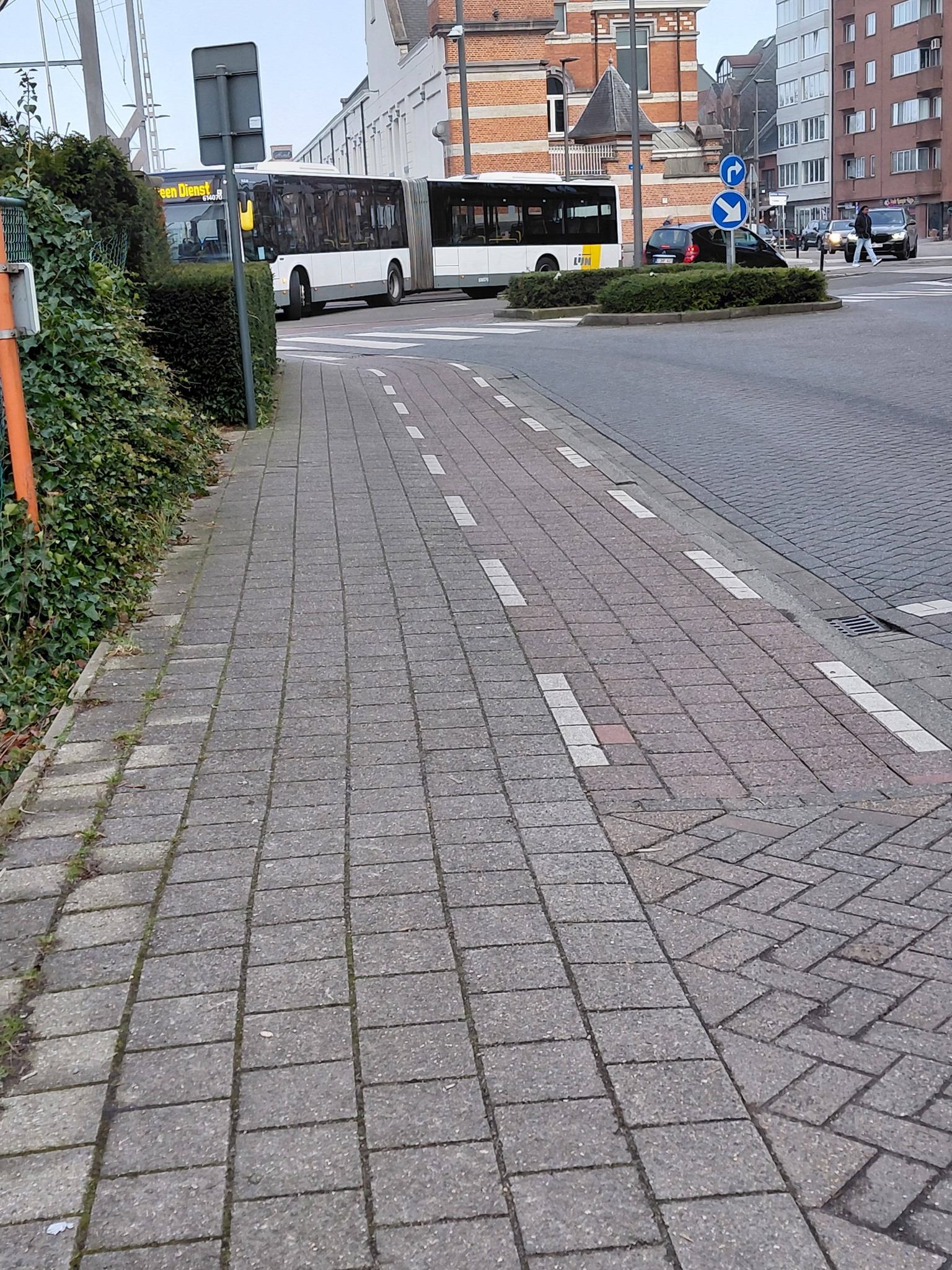 Zo ben ik al enkele keren flink in de remmen moeten gaan als ik met de auto de Spoorwegstraat wil inrijden en er plots een fietser, komende uit de Spoorwegstraat, pardoes de weg dwarst om dan zijn weg verder te vervolgen langs het fietspad aan de verkeerde kant van de De Merodelei. Hetzelfde euvel doet zich ook voor in omgekeerde richting (Spoorwegstraat uit met de auto)