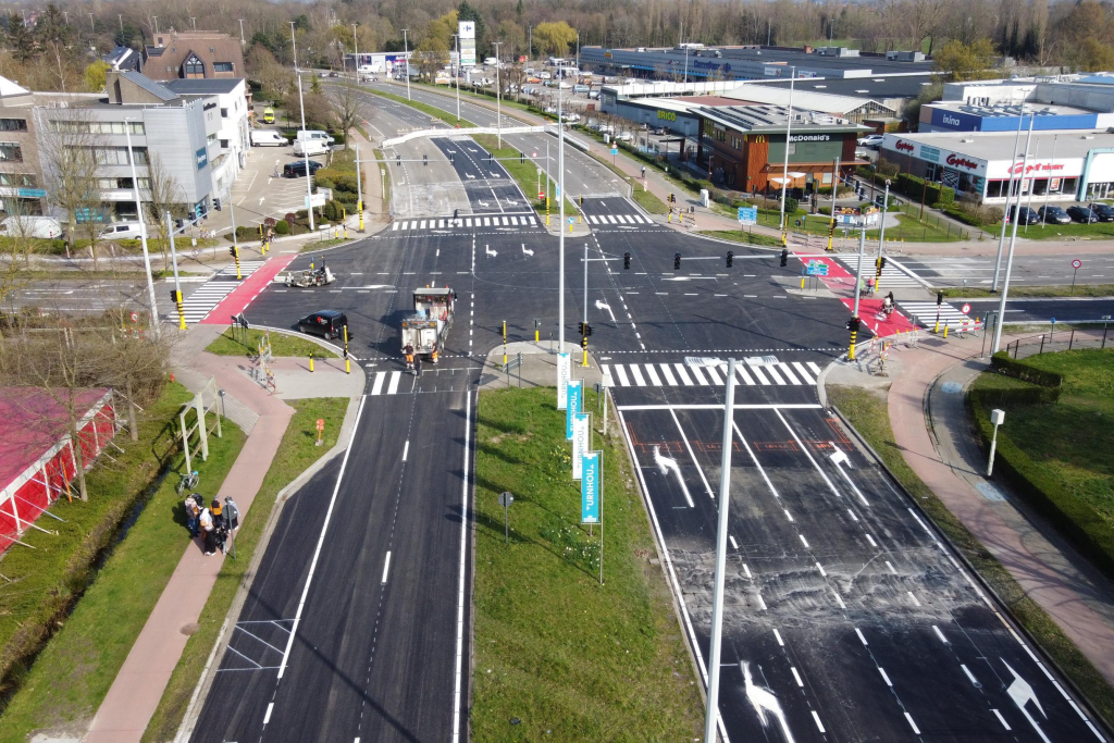 Een begrijpelijke vraag maar om aan dat probleem tegemoet te komen zijn er ongetwijfeld aanpassingen nodig aan de weginfrastructuur. Zo bvb het verlengen van de afslagstrook -maar is daar wel ruimte voor- en het verlengen van de groentijd, maar dan zet je uiteraard de hele regeling van dit conflictvrije kruispunt op de helling.