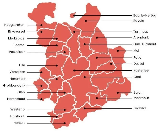 Concreet betekent dit een hertekening voor 15 van de 27 gemeenten in het arrondissement Turnhout. Deze 15 hebben immers een bevolking van minder dan 15.000 inwoners. 5 gemeenten tellen zelfs minder dan 10.000 inwoners.
