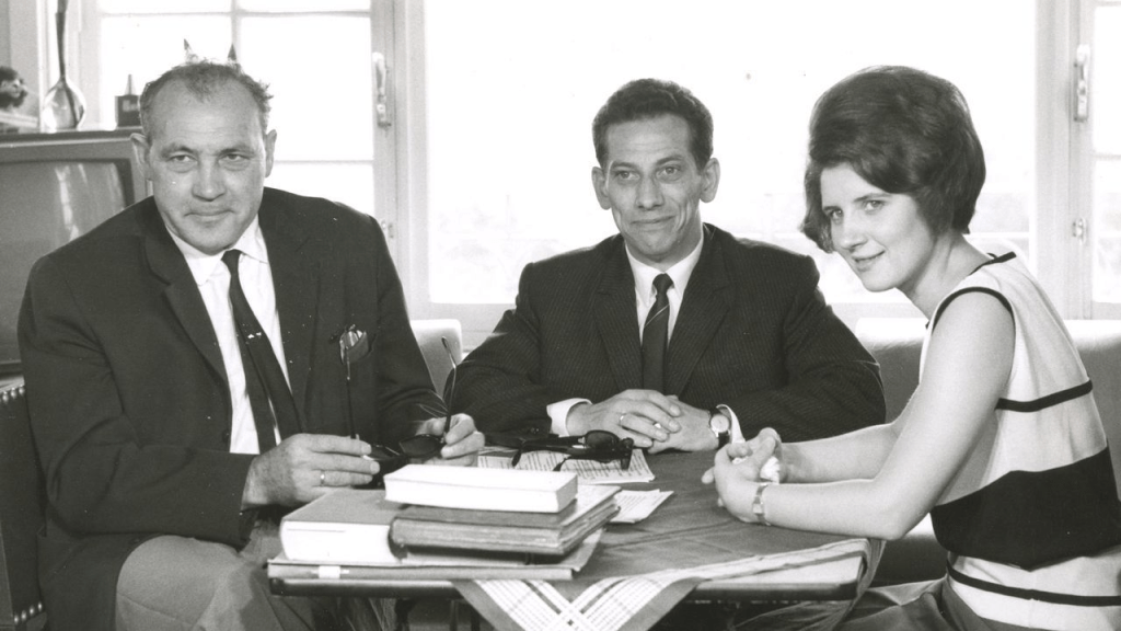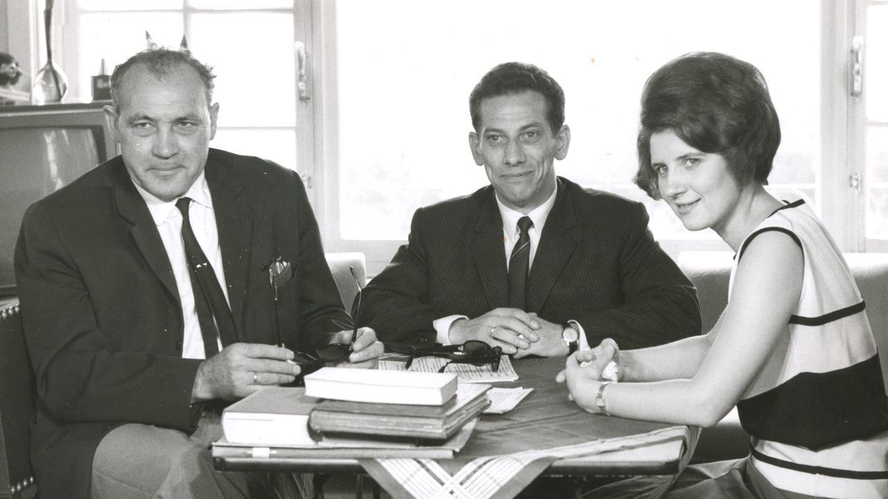 De presentatoren van ‘Hier spreekt men Nederlands’ (v.l.n.r.): Joos Florquin, Fons Fraeters en Annie Van Avermaet.