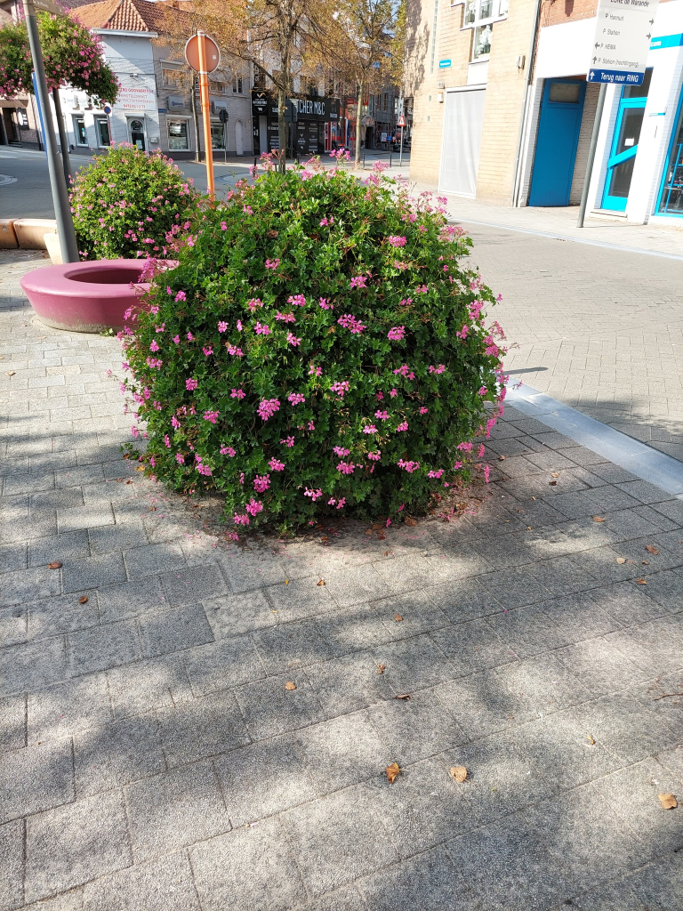 TIP voor de dienst groen, (de bakken zijn ondertussen weggehaald) zet die daar volgend jaar niet terug maar zorg dat er voldoende ruimte is om de stoep wel te kunnen gebruiken met een scootmobiel/rolstoel.