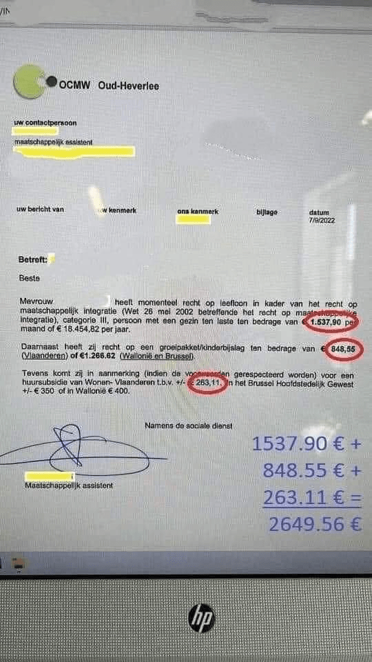 Sedert enige tijd circuleert er een brief van het OCMW Heverlee (?!) aan één van hun cliënten, op sociale media.