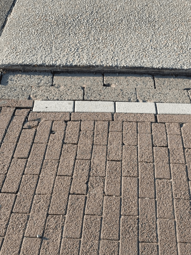 Naast het fietspad aan de rotonde van het station zijn de klinkers al een hele tijd weggezakt (weggereden eigenlijk) waardoor er een gevaarlijke situatie ontstaat vermits het beton daardoor enkele cm hoger komt te liggen. Gelijkaardige situatie aan de overkant (Stationsstraat) waar het voor fietsers zeker ook wel eens tot platte banden kan leiden