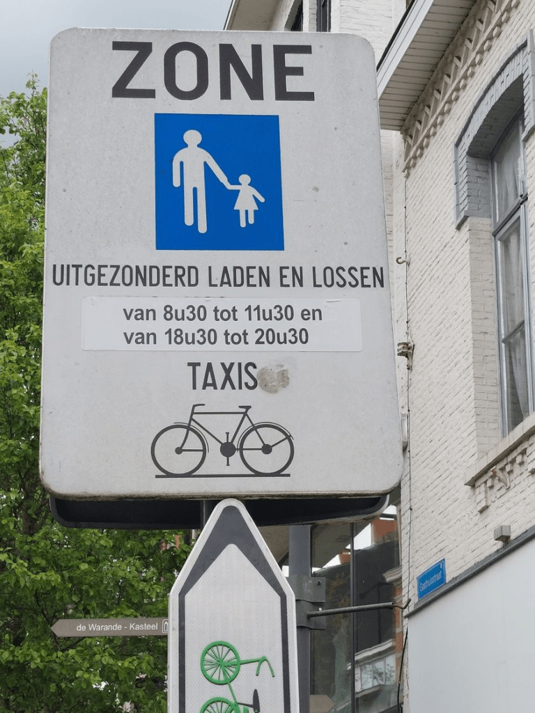 Ik wil er ook even op wijzen dat de Gasthuisstraat absoluut géén winkel-wandelstraat is. De definitie ervan is immers dat er enkel voetgangers toegelaten zijn. (behalve indien op welbepaalde tijdstippen er ook fietsers mogen doorrijden) Door de Gasthuisstraat mogen zowel de bussen van De Lijn, als Taxi’s en fietsers rijden. En zelfs, het nog steeds massaal, fietsen in tegenrichting wordt er tè oogluikend toegestaan.