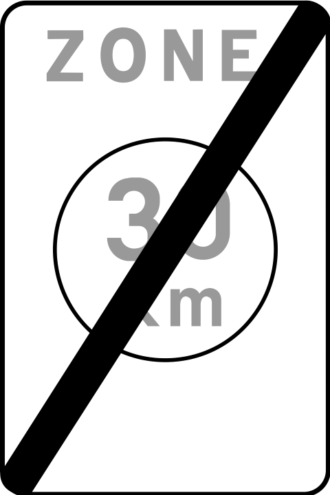 En deze snelheidsbeperking blijft gelden in alle straten die je blijft volgen tot je het navolgende bord -einde zone 30- op je weg tegenkomt