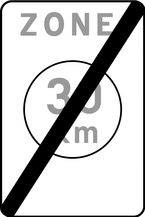 En deze snelheidsbeperking blijft gelden in alle straten die je blijft volgen tot je het navolgende bord -einde zone 30- op je weg tegenkomt