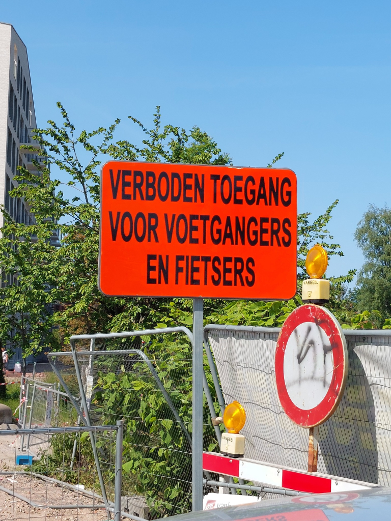 Maar als je dan met de fiets wil doorrijden kom je volgend bord tegen. Ik neem aan dat dit geen verdere toelichting nodig heeft.