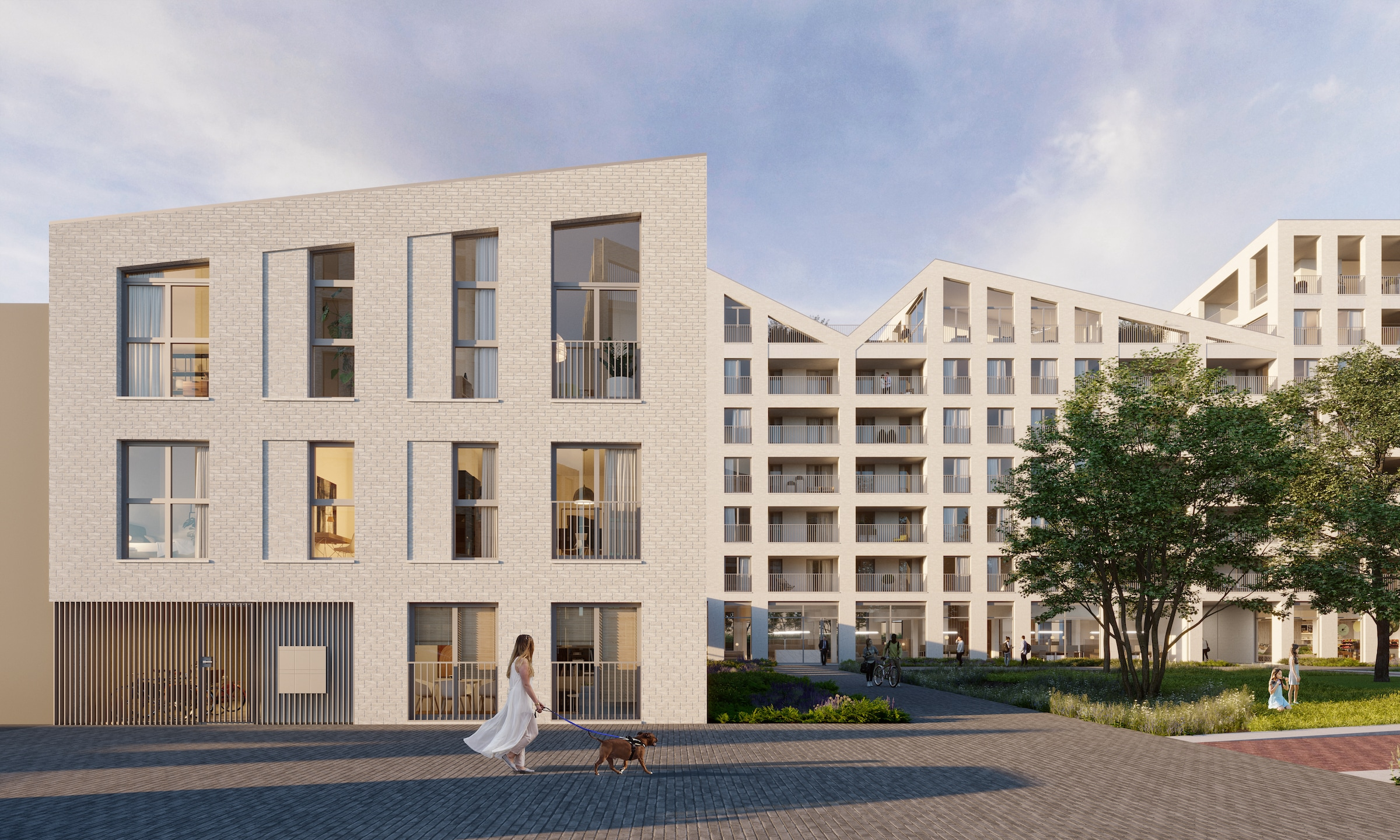 Dit gebouw zal het Vliegeniersgebouw worden genoemd en voorziet in 97 appartementen – handel en diensten op gelijkvloers en dus een ondergrondse parkeergarage, voor bewoners