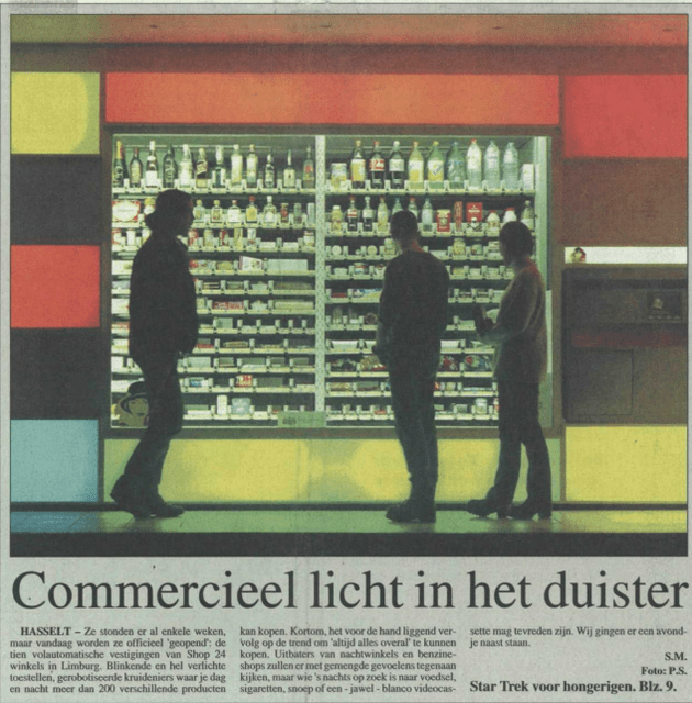 Anderen zullen hem dan weer herinneren van het New Distribution Systems (NDS) de eerste volledig geautomatiseerde winkel, die hij Shop 24 doopte. Vergelijk het met een automaat van vier meter breed die tweehonderd producten bevat.