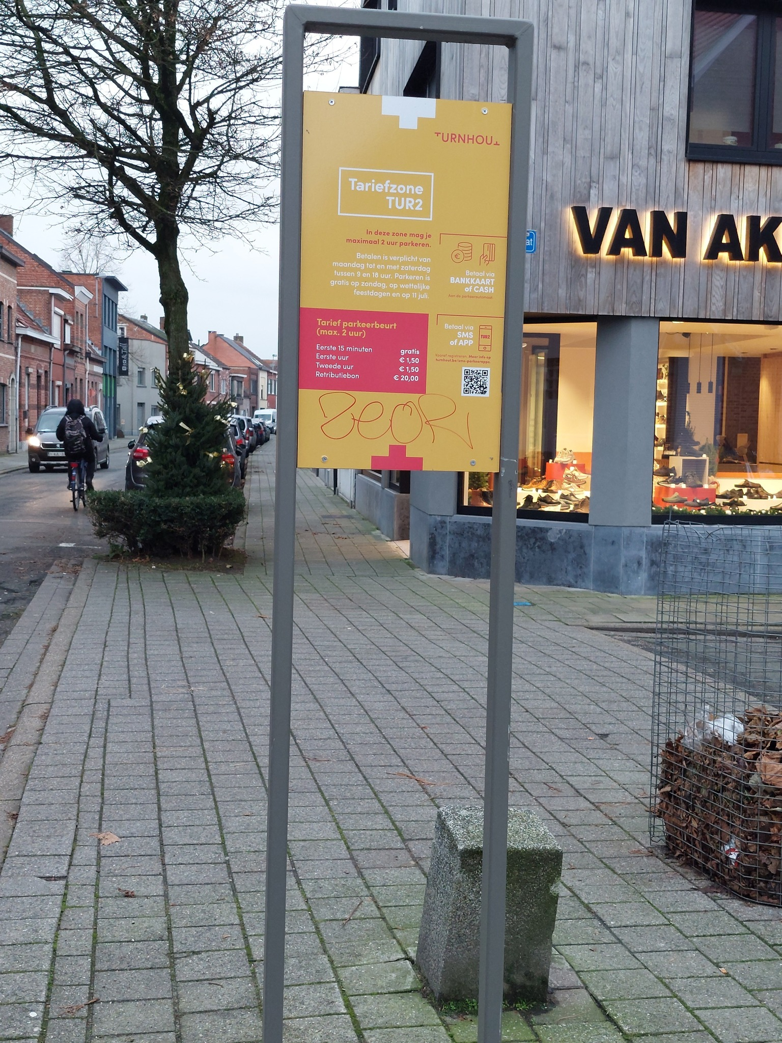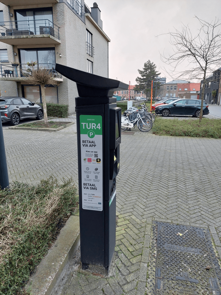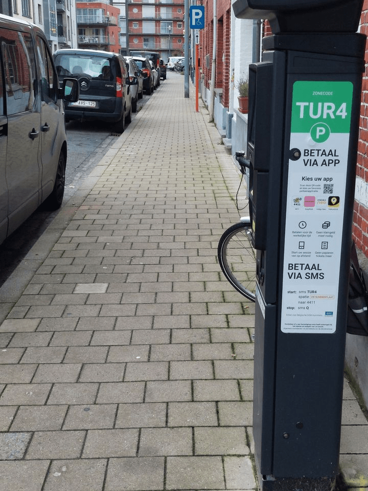 Maar als ik aan dat bord sta heb ik nog géén 50 meter verder een parkeermeter van… zone 4, in zicht.