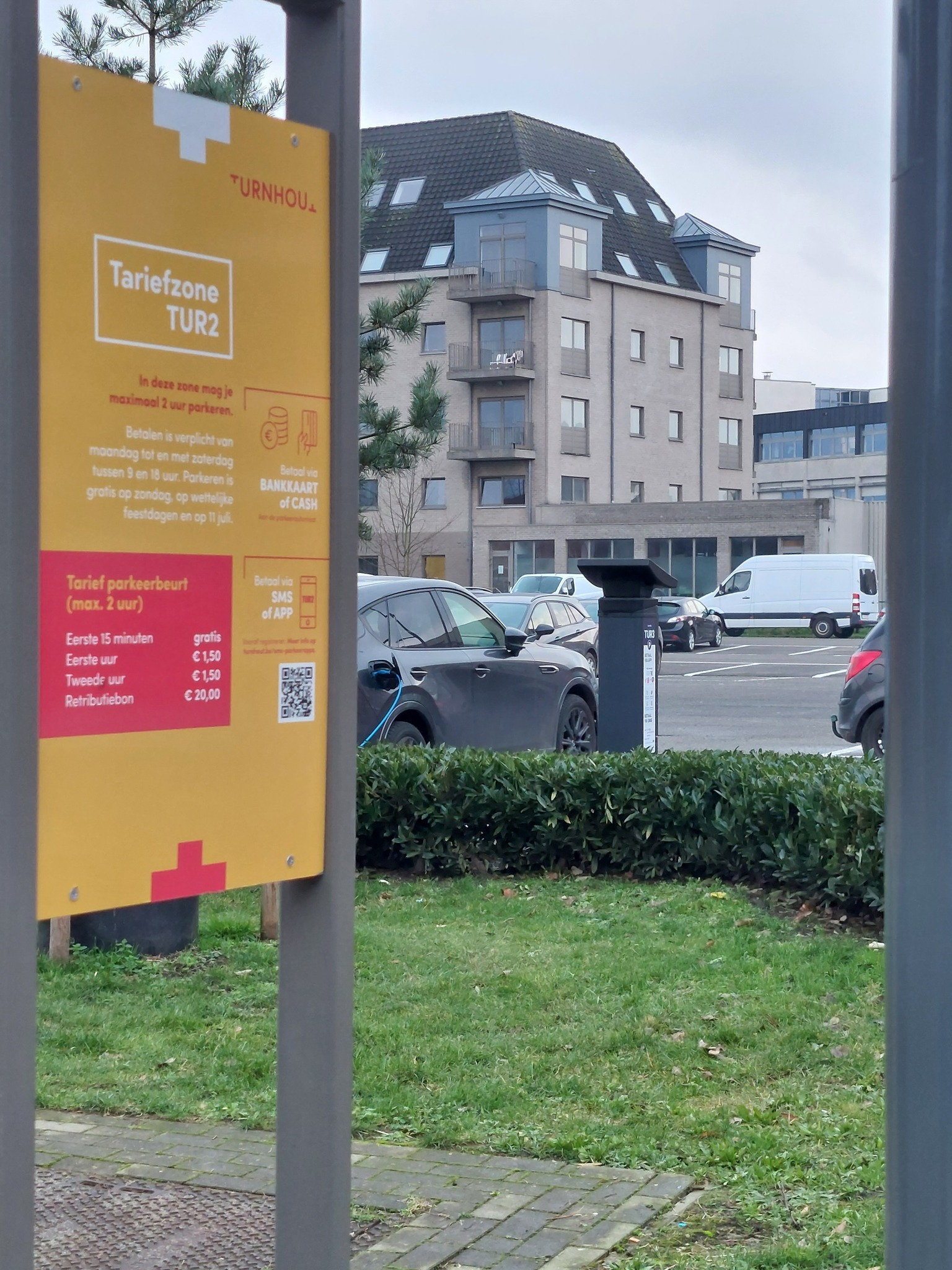 Als je dan aan die parkeermeter staat heb je direct rechts van je de parking Loechtenberg, wat dan weer zone 3 is…