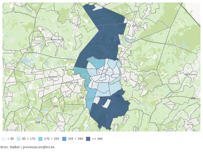 De cijfers in de stadsregio zijn de volgende : Oud-Turnhout = 10,7%; Kasterlee = 5,6%; Lille = 9,8%; Beerse = 8,5% en Vosselaar = 10,7%