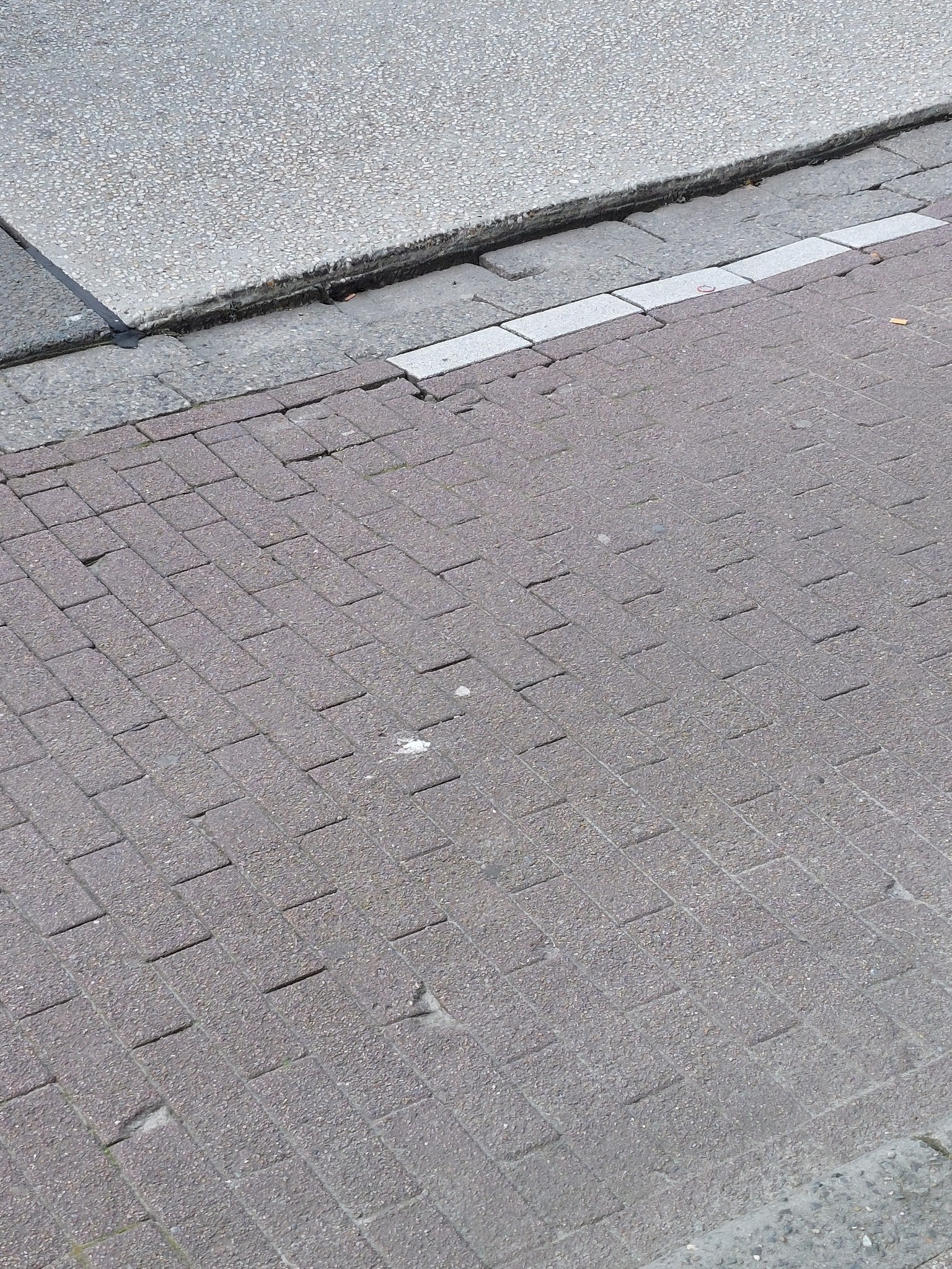 Maar in de aanloop naar deze rotonde bleven op meerdere plaatsen nog wel betonklinkers liggen. Zo bijvoorbeeld twee rijen betonklinkers naast het fietspad.