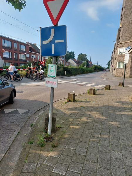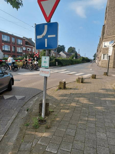 Dagelijks stel ik, in het binnenstedelijk verkeer in Turnhout, vast dat veel te vaak dergelijke haaientanden op de weg, vergezeld van het verkeersbord B1, straal worden genegeerd. Door (brom)fietsers èn door automobilisten.