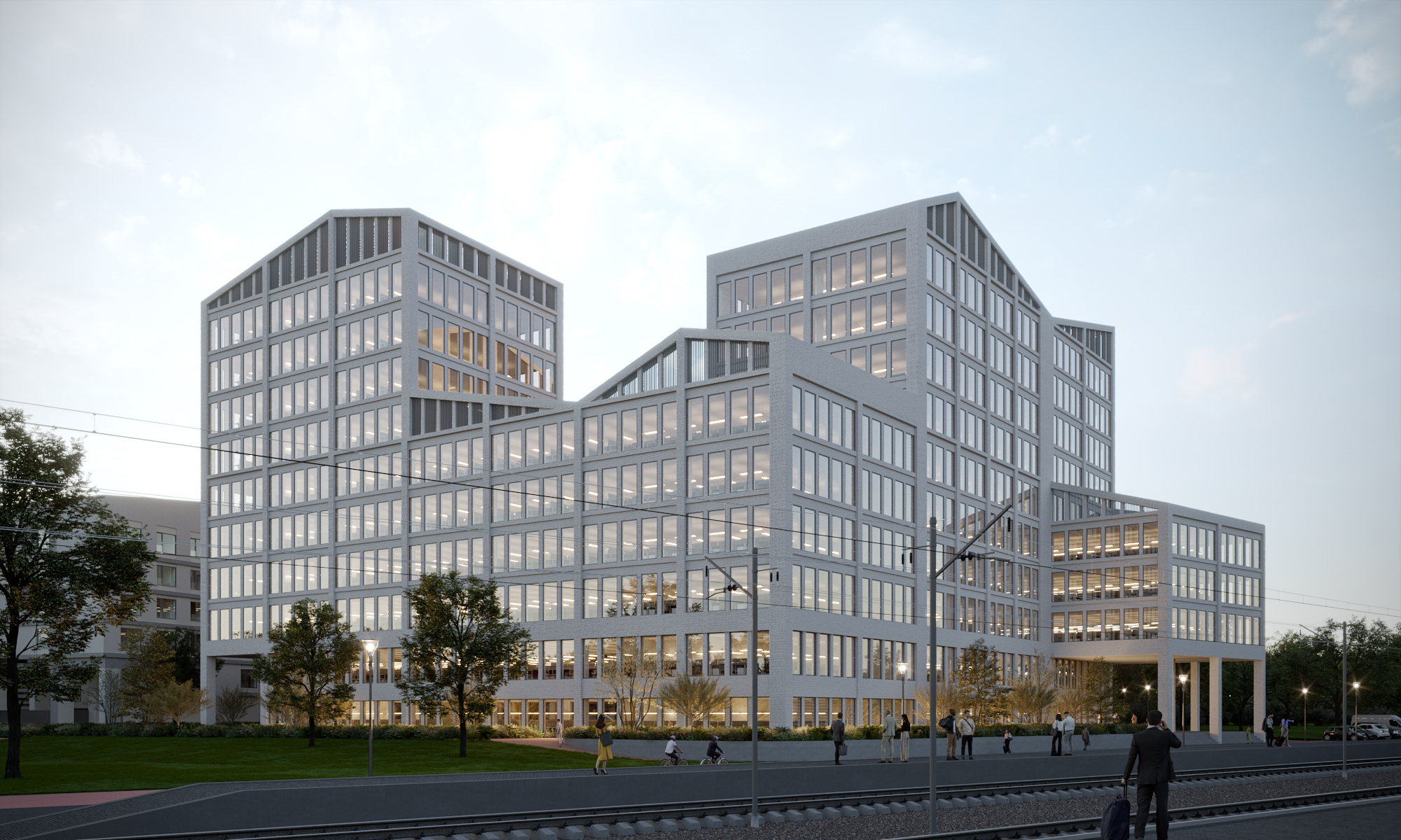 Oorspronkelijk waren er vier losstaande kantoorgebouwen gepland, maar uiteindelijk werd gekozen voor één groot aaneengeschakeld gebouw. Dat is duurzamer en beter te isoleren. Tegelijk beantwoordt het meer aan de steeds grotere vraag naar gedeelde werkruimtes.