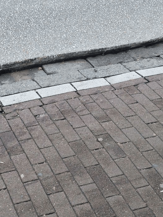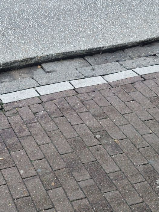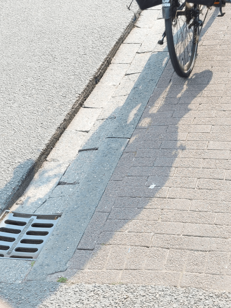 De foto’s tonen duidelijk het probleem aan…twee rijen ingezakte betonklinkers en dat blijft zo meters lang. Ik vrees de dag dat een fietser(s) zich hieraan verongelukt…