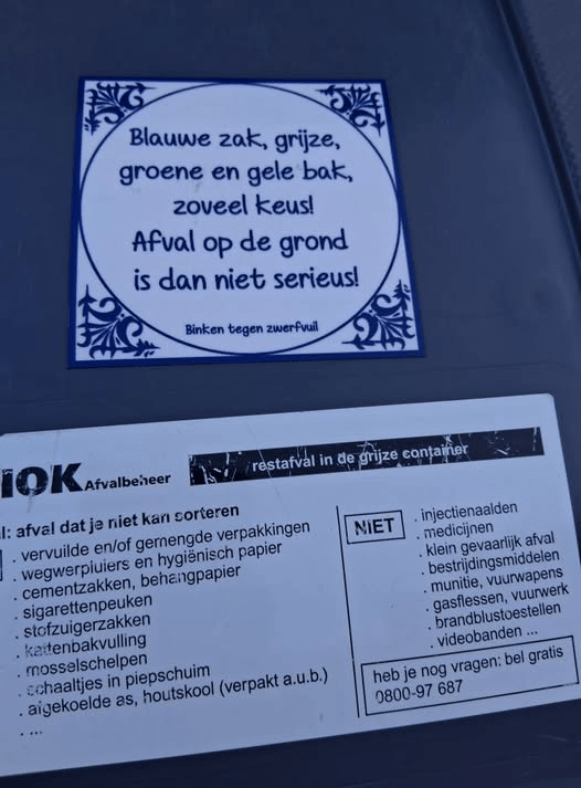 In 2018 voerden Peter Baobab Gevers en ikzelf nog een actie om de plaag van het zwerfvuil in Turnhout, te lijf te gaan met tegeltjeshumor. Op eigen kosten liet ik 500 zelfklevers maken met de spreuk zoals je op deze foto kan zien.
