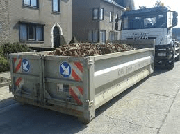 Een gevulde afvalcontainer van breekwerken…er werd zelfs niet de moeite genoemen om deze te verwijderen…