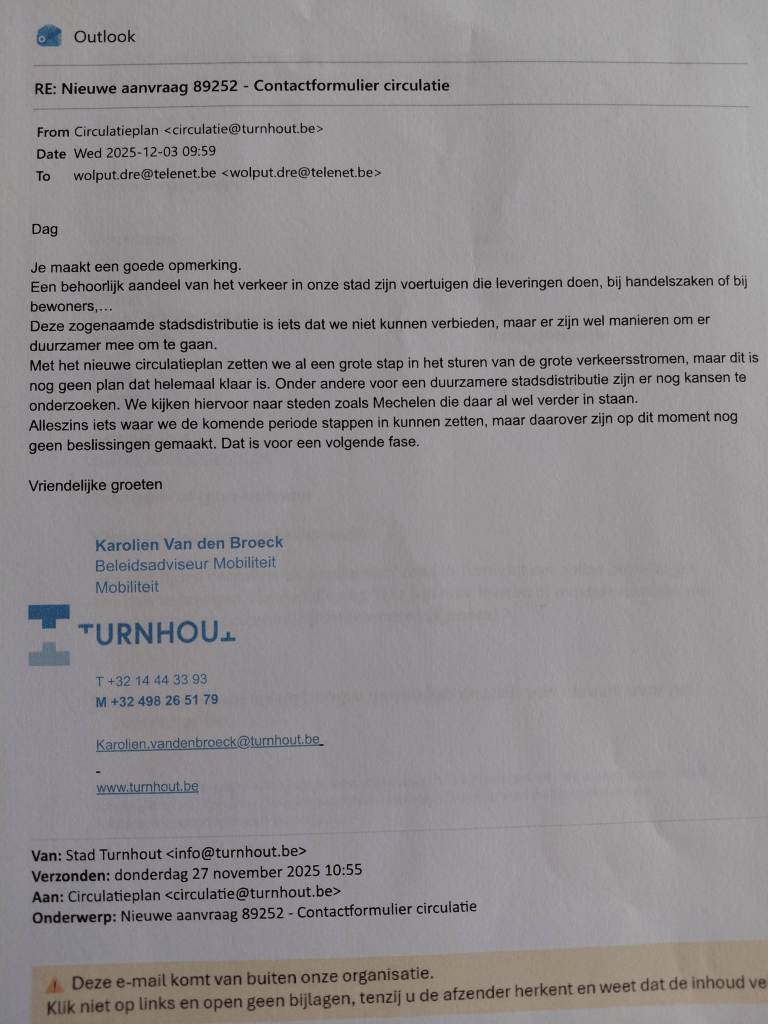 *Wat met de tientallen pakjesdiensten die dagelijks onze stad en straten doorkruisen ?! Zullen die nog aan huis kunnen leveren of moeten voortaan alle bestelde pakjes op centrale punten worden afgehaald ?