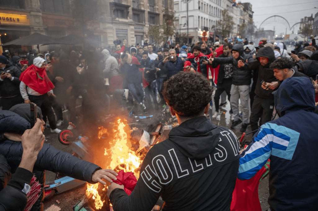 *Bij ongeregeldheden in de hoofdstad met Marokkaanse supporters (10/12) zijn uiteindelijk 60 mensen opgepakt, de helft minderjarigen. De jongeren vielen onder meer een commissariaat aan in Bockstael, een achtergestelde wijk in Laken.
